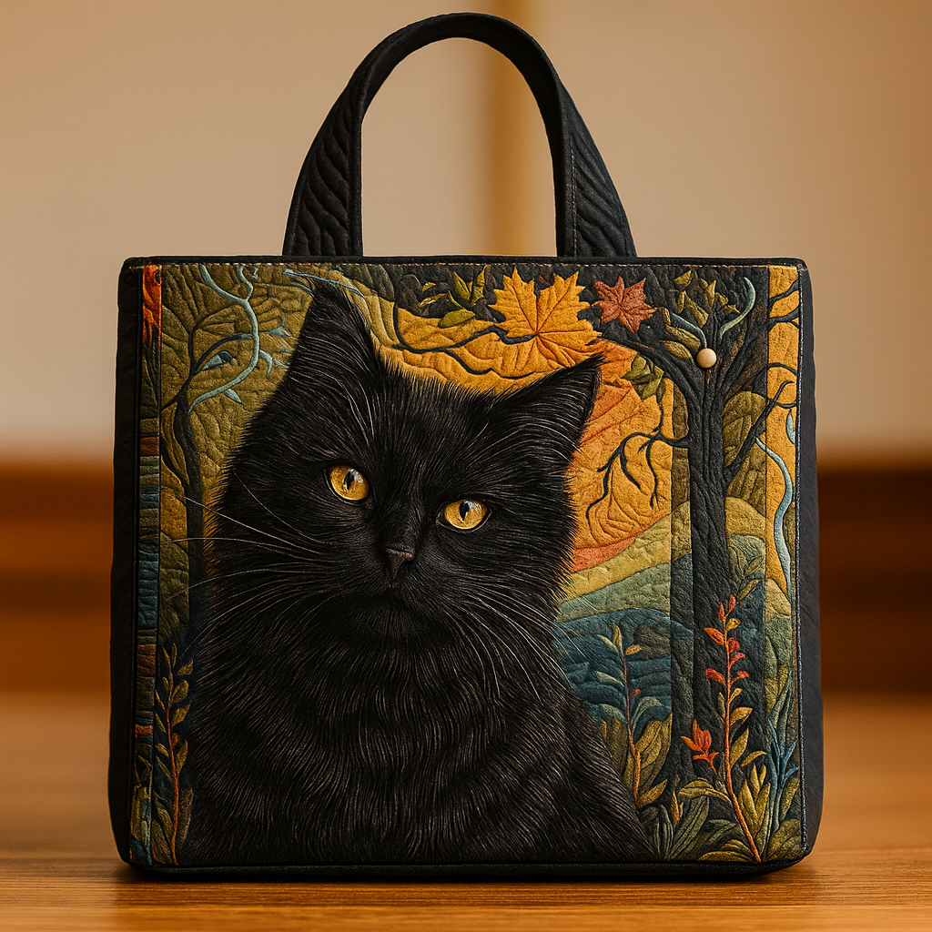 Our Midnight Whispers Forest Cat Quilted Tote brings that serene moment to life through lifelike embroidered fur, layered forest textures, and dimensional quilting that makes every detail feel warm, tactile, and artistically crafted 🌿.