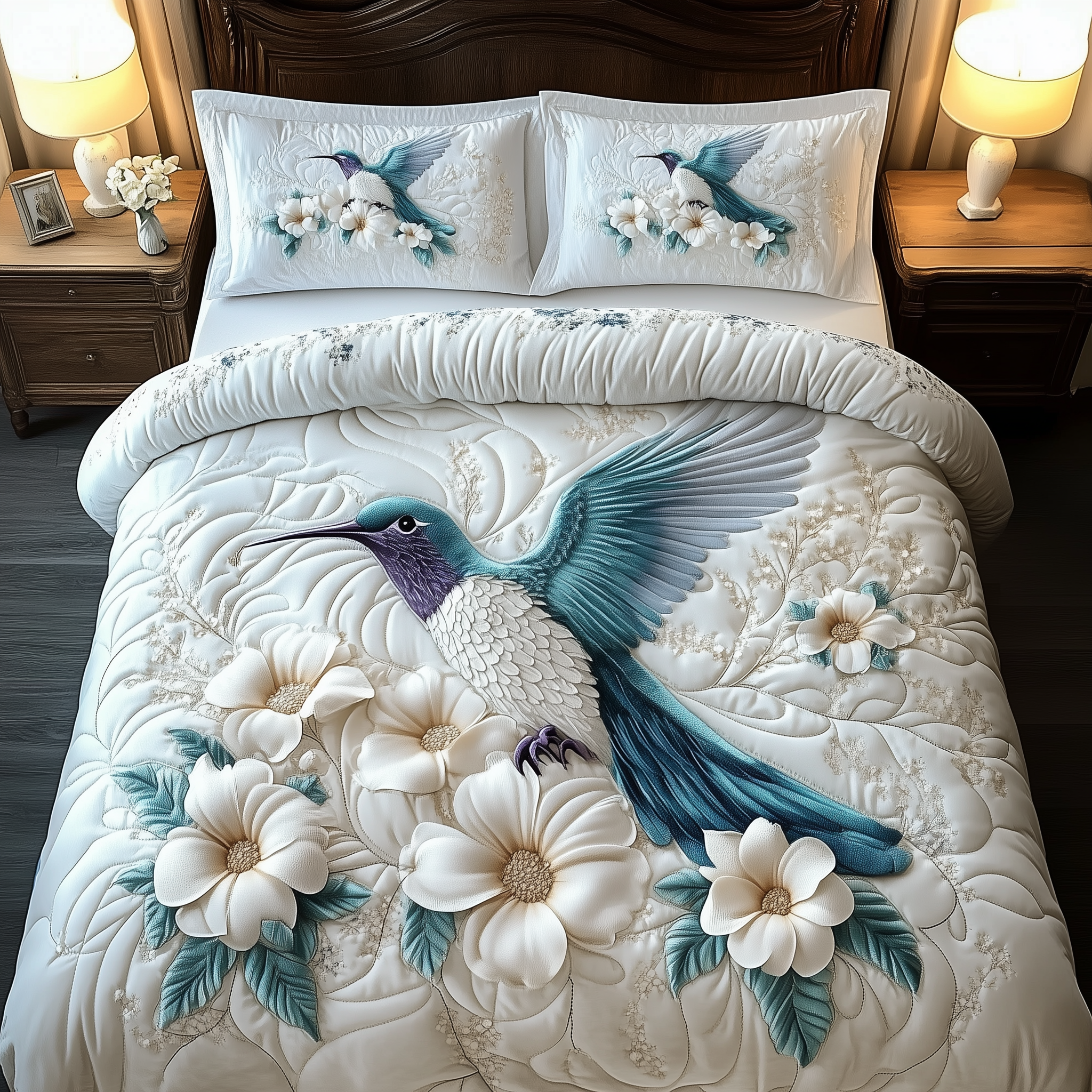 Winter Hummingbird 3-Piece Quilted Bedding Set GFTOAB1782